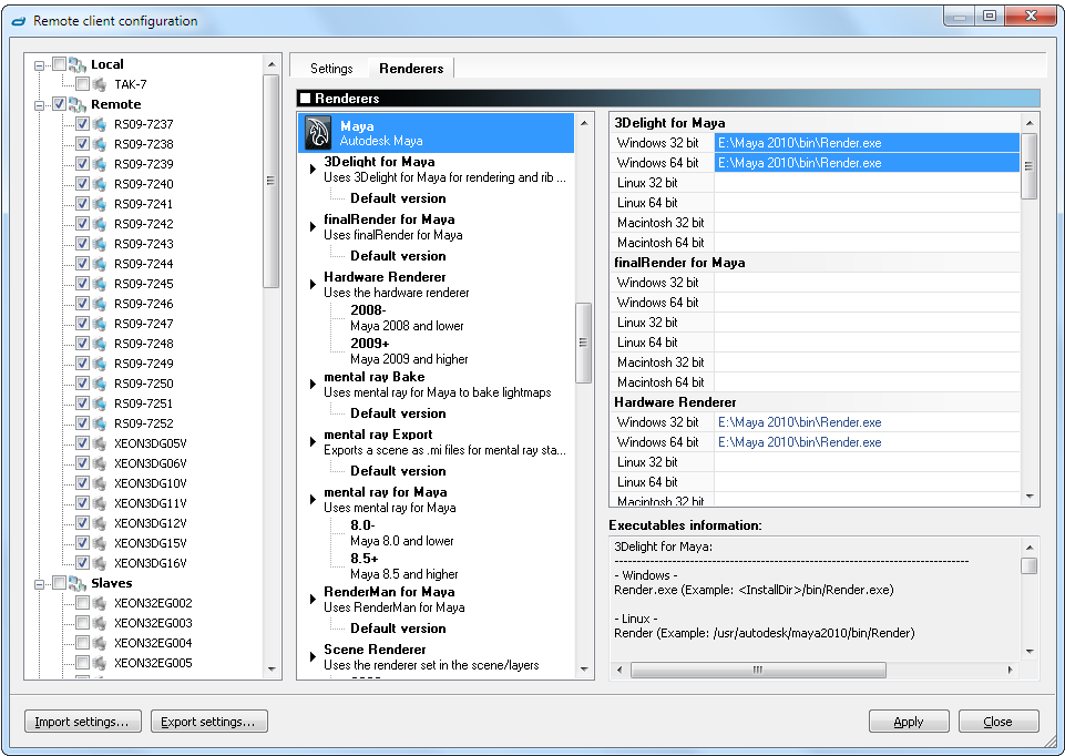 Supporting a large number of renderers and compositing applications out-of-the-box, including Maya, Mental Ray, Softimage/XSI, 3D Studio Max, Cinema 4D, Maxwell, Modo, SketchUp, After Effects and many more, RenderPal V2 is the number one choice for a solid, powerful and easy to use Render Farm Manager.