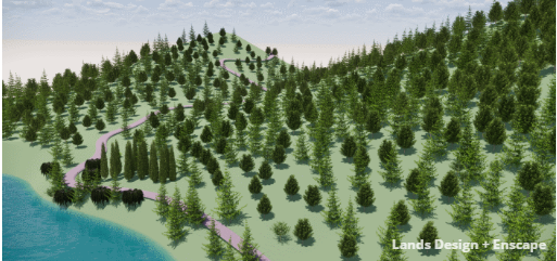 The powerful terrain, forest and irrigation tools accompanied with hardscape tools, can be used in design process and modeling of forests in silviculture sector. BIM technology visualizes seasonal change and annual growth of plants.